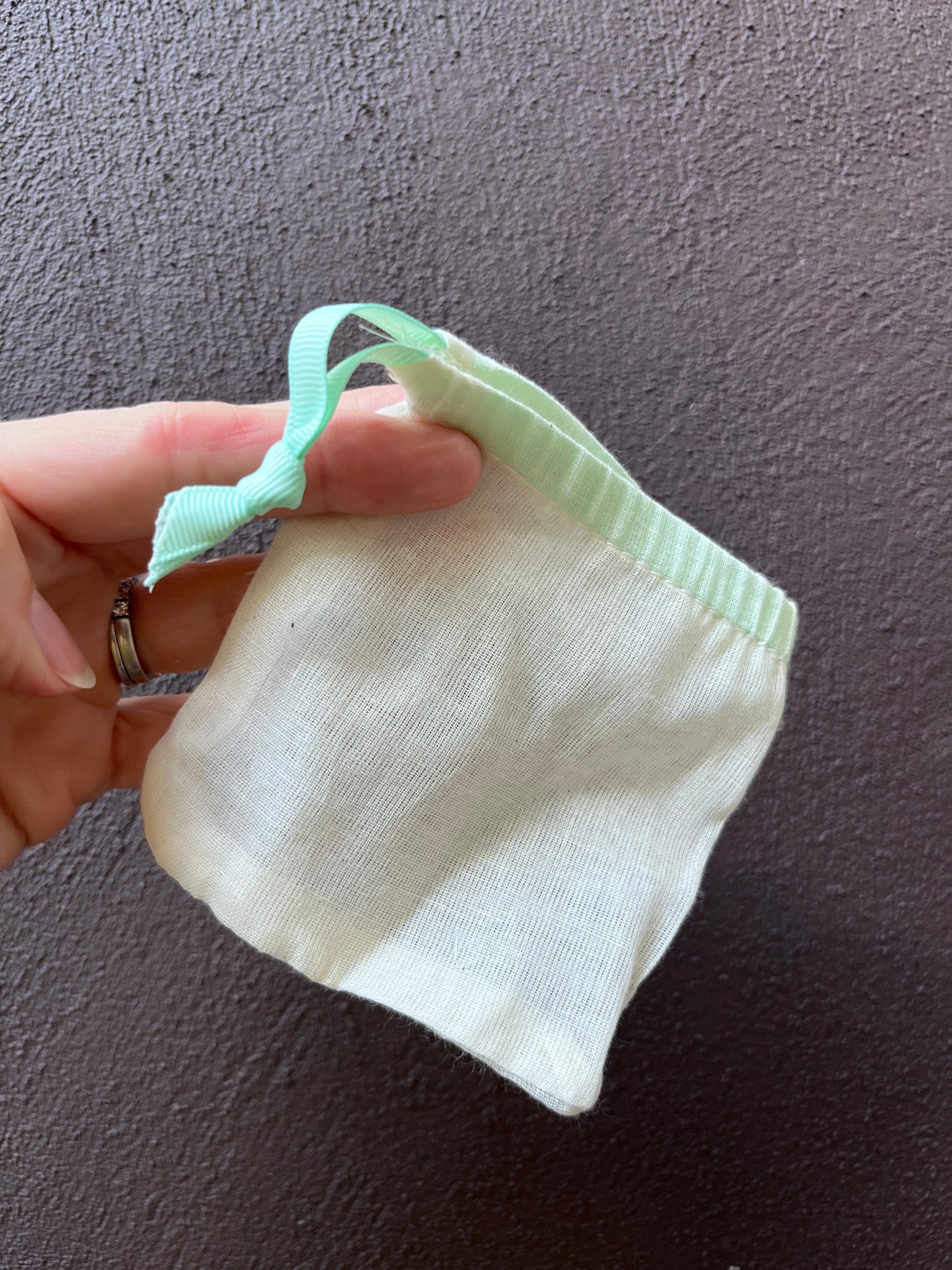 These soap saver cotton bags are perfect for storing your Solo Bar in between uses.